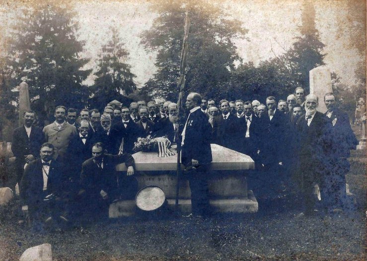 The 125th Ohio Volunteer Infantry orginal drum and colors with members of the regiment. Date unknown.