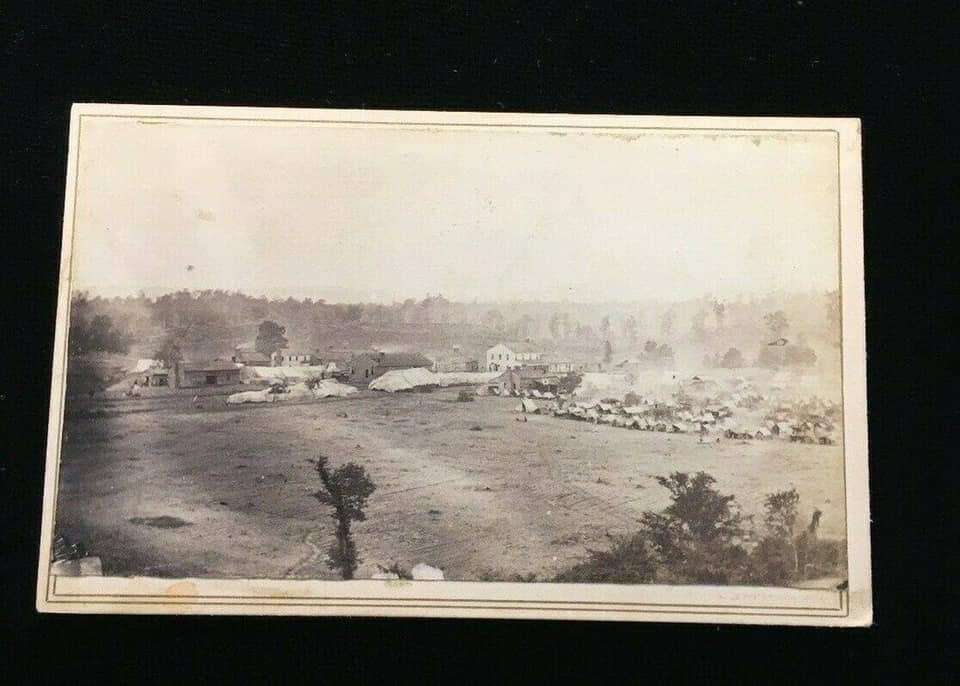 Stalwart Resaca researcher Tony Patton found a couple of period photographs featuring the Resaca Depot during wartime and from 1886. Click the photos for larger views. The first shows the Depot with a military encampment on the right. It was taken from the heights of Fort Wayne. The second shows a group of gentlemen sitting at the Depot twenty-one years after the war.