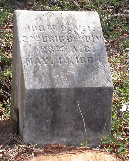 Ed Bearss lectures to more than 70 tour participants in front of the 103rd Ohio marker. Bearss offers very detailed and animated discussions on aspects of whatever battlefield he happens to be on at the time. He brought the Federal attack of May 14, 1864 to life for the participants. |