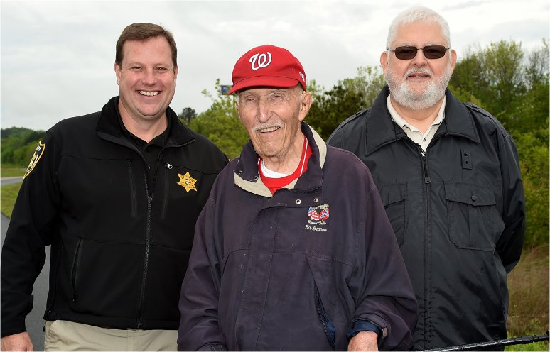 Historian Ed Bearss (center) with Gordon County Sheriff and Civil War enthuisast Mitch Ralston (left) and FORB President Ken Padgett (right).